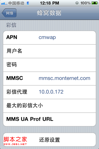 7、至于移动MMS设置,参照下图就额可以了。然后需要短信设置里开启MMS。