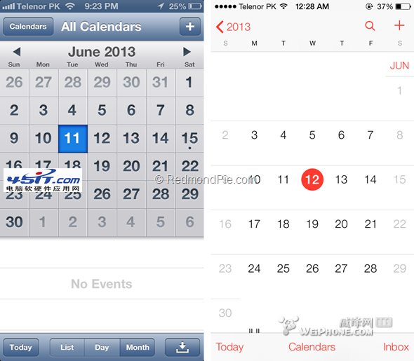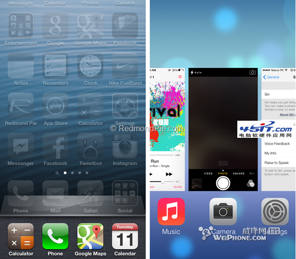 左边 iOS 6 右边 iOS 7,我们整理了多张对比图,让大家以最直观的角度来看待两代系统之间的视觉差异。无论是桌面、拨号界面、还是地图等等,我们都能看到几乎完全不同的视觉效果。不知道各位看完之后,是否会对 iOS 7 产生新的理解?如果你没有接触过 iOS 设备,又会喜欢哪一个系统呢?