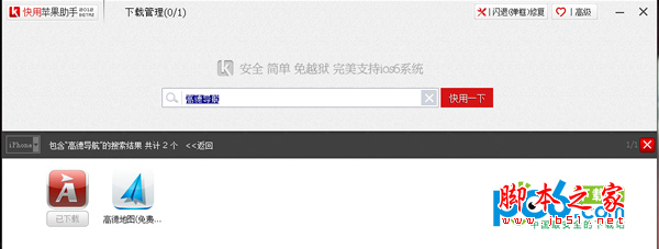 首先,我们从PP助手或者快用苹果助手中下载一个高德导航,这个导航目前是没有地图包的。