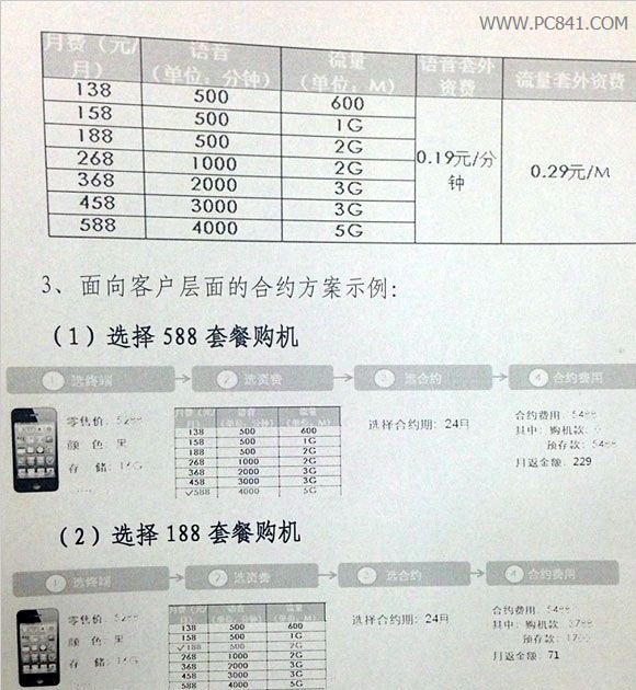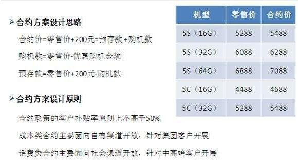 iPhone5s移动版合约机套餐价格图表