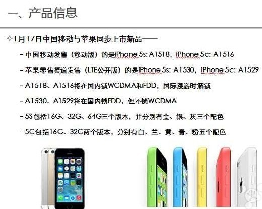 2、苹果官方发售的移动版iPhone5s具体型号为:A1530;另外有关iPhone5c以及其他一些介绍,请看下图。