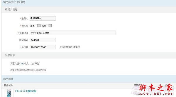 2、上面点击购买页面后,就会进入到进一步信息填写界面,主要填写收货人信息、收货地址,收货人手机号码等,如下图所示: