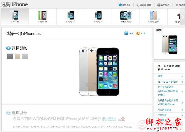 1、首先登陆中国移动商城移动版iPhone5s购买地址:http://shop.10086.cn/iphone/5s/791.html,其购买界面如下图所示: