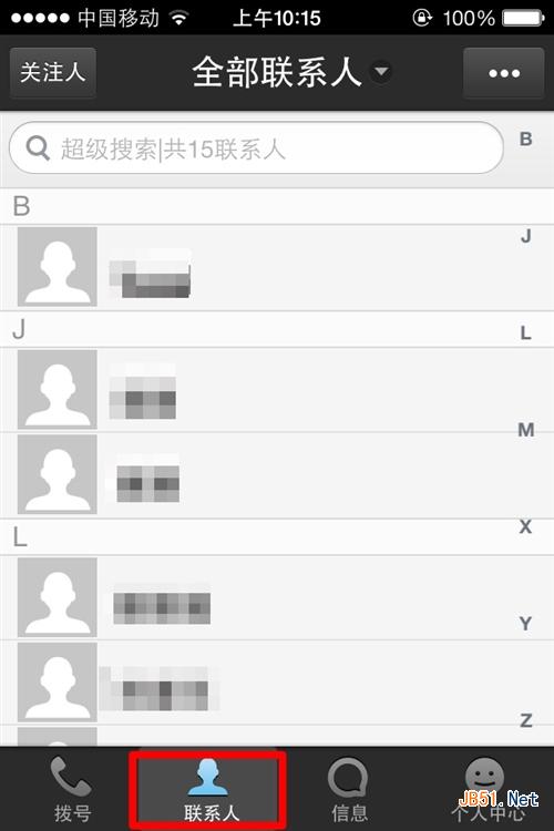 2、然后,打开QQ通讯录,打开“联系人”界面;