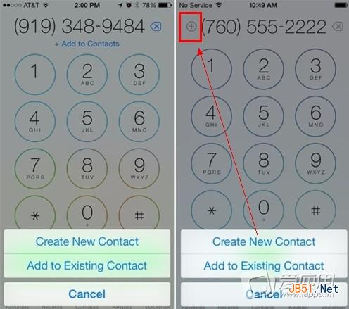 拨号界面添加联系人: