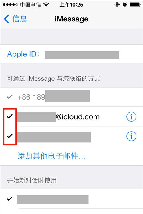 除此之外,我们还可以减少 iMessage 接收地址,最大程度降低信息骚扰。进入「系统设置--信息--发送与地址」,根据自己的需求,在「可通过 iMessage 与您联络的方式」子选项里剔除无关的联系方式。