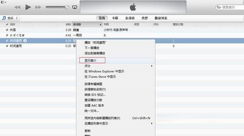 1.对一个完整的音乐进行剪切,右键歌曲——选择显示简介:
