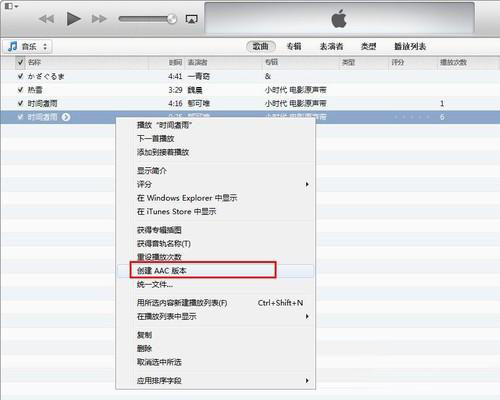 5.对新的铃声右键——创建AAC版本——创建成功: