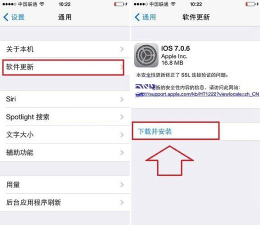 最后等待下载完,我们按照提示完成升级更新即可,想要详细了解的朋友,可以参考下之前的这篇:iOS 7.0.5怎么升级 iOS7.0.5详细升级教程,步骤是一模一样的。
