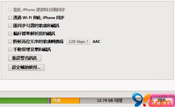iTunes Wi-Fi 同步方式:在电脑 iTunes 的“摘要”下方勾选“通过 Wi-Fi 与此 iPhone 同步”,然后到 iPhone 的“设定 > 一般 > iTunes Wi-Fi 同步”里点击“立即同步”即可。