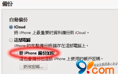 针对有这个困扰的朋友,Apple 在 iTunes“摘要”面板的备份中设有一个“替 iPhone 备份加密”功能,你可以设定密码来保护备份资料。将来如果想从这个加密备份恢复资料的话,必须要输入密码才行。如果不小心忘记密码,就只能执行完整软件恢复,选择将 iPhone 设成新设备,所以健忘的人勿用。