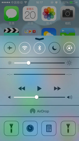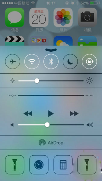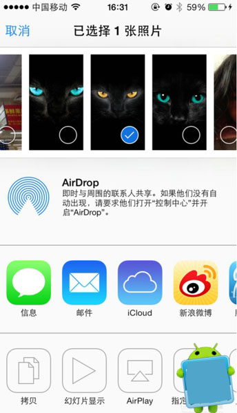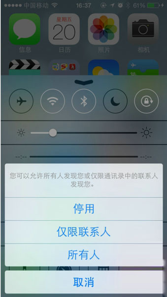 手机升级之iOS7以上的系统从下往上即可调出AirDrop如下图: