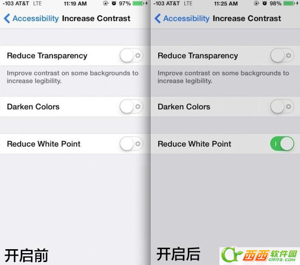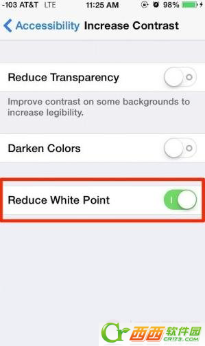 第四步:开启“减少白点”就可以。这样就不需要越狱安装一些插件来实现这个功能。而且因为是苹果自己开发的,和iOS应用是100%兼容。