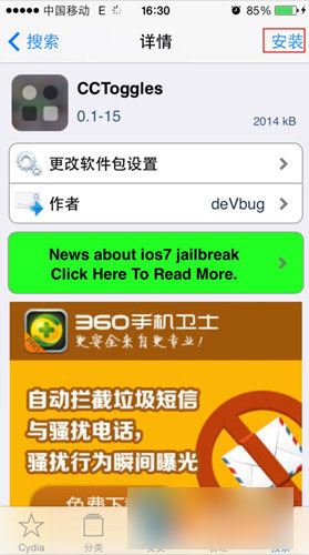 2.搜索插件名称cctoggles,找到bigboss的免费源,并安装