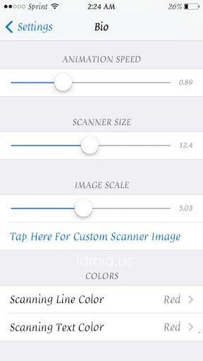 这款插件在锁屏界面中会放置一个图标,当你把手指放上去的时候,一个红色的镭射光就会上下移动,然后你的设备就会解锁。