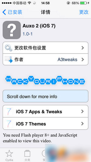 提示:如果搜索不到Auxo 2,可以进入Cydia—【变更】—点击左上角【刷新】—再搜索该插件。