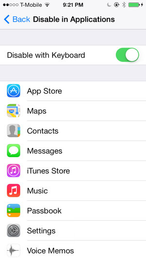 由于在某些游戏或者应用操作中需要使用到滑动等操作可能会不小心打开AUXO 2一些功能,因此作者也加入了黑名单,把经常误操作的应用禁用或者在有键盘时禁用AUXO 2功能。