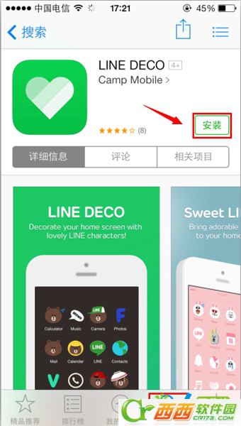第一步、进入苹果APP商店→“搜索:Line Deco”→选择“安装”