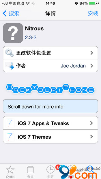 提示:如果搜索不到Nitrous,可以进入Cydia—【变更】—点击左上角【刷新】—再搜索该插件。