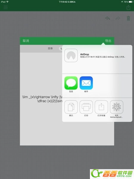 来自 MyScript 公司的 MathPad 软件则是一款手写的输入软件,被称为发电机 LaTex(相信也会有所耳闻吧这个软件)的手稿,可以通过手写直接写出复杂的数学算式,并支持导出为 LaTex 以及 MathML 格式的代码。最重要的是,支持跨软件使用 WolframAlpha 运算写出来的式子。这样以来,就可以像在草稿纸上一样写出需要计算的式子,然后直接导入到 WolframAlpha 中就可以计算了。PS:若需使用导出至 WolframAlpha 功能需内购。