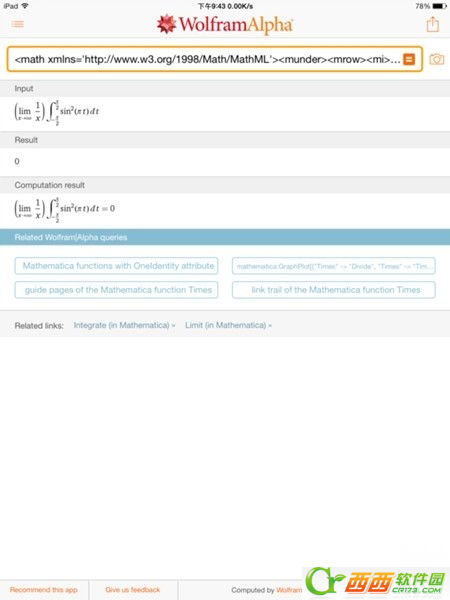 怎么用iphone完成微积分运算,Mathematica同学们应该都知道这款软件,WolframAlpha 可以说就是移动版的 Mathematica(来自同一公司),并且不局限于计算,可以说是 Wolfram 公司的维基百科,天文地理艺术人文无所不知。但是 WolframAlpha 的输入十分繁琐,特别是稍微复杂一点的运算式,各种运算会包含一层一层又一层的括号,还得在键盘里到处寻找你所需要的符号。用过 matlab 的就知道要把带很多分号括号积分乘开方的式子变成一行代码是比较痛苦的,要在 iPad 上写出来就更加麻烦了。PS:需联网才能使用。