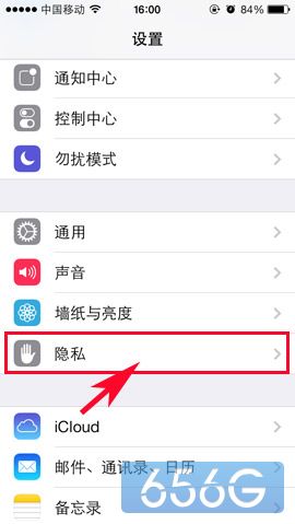 1)首先,点击【设置】进入,然后点击【隐私】。(如下图所示)