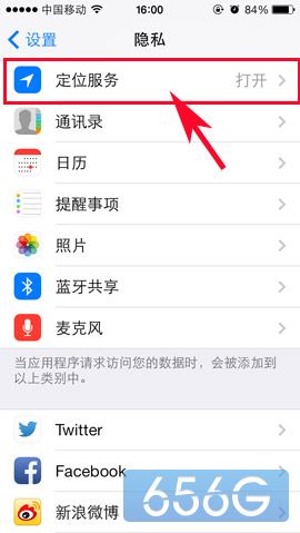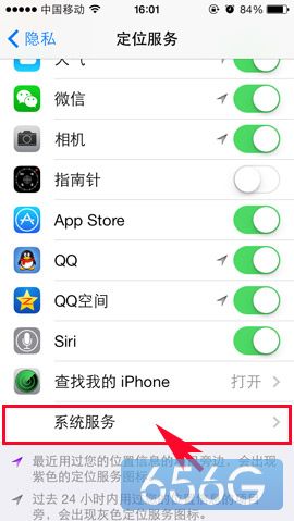 2)进入【隐私】界面后点击【定位服务】,然后往下拉,找到【系统服务】后点击进入。(如下图所示)