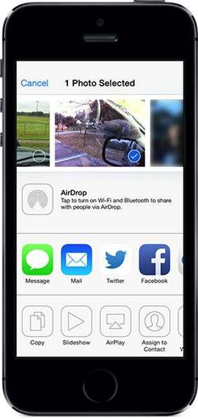 安装完成后,就可以获得像iOS7内置的分享选项(左下角),可以分享图片到设计网络,信息,邮件等。