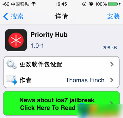 提示:如果搜索不到Priority Hub,可以进入Cydia—【变更】—点击左上角【刷新】—再搜索该插件。
