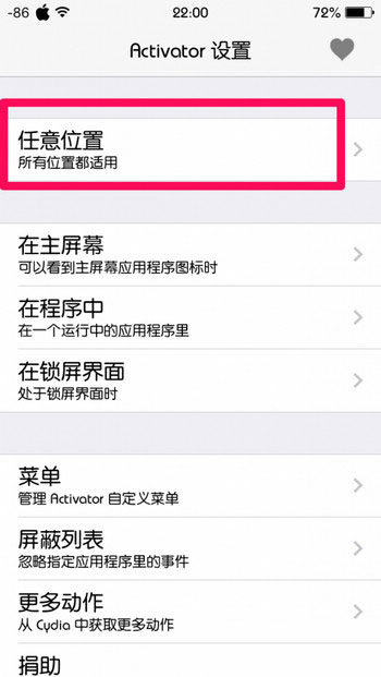 打开Activator,第一个选项便是“任意位置”,点开它。