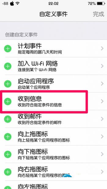 然后右上角便会有一个“编辑”,点一下他,便会让你选择自定义事件。在这里选择“收到短信”。