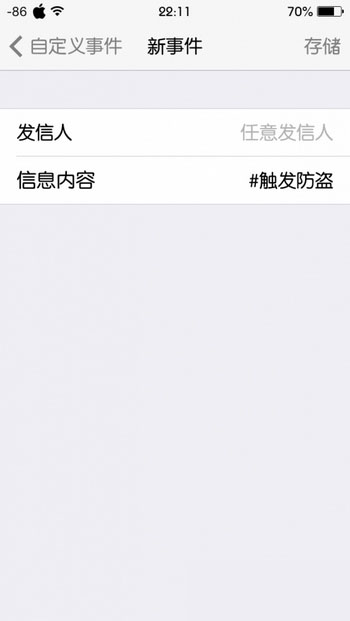 1.在手机被偷后(当然最好不要发生……),随便用一个手机发条短信到这部手机(信息内容为你设置的内容,如果按照上面步骤所说,就应该发送“#触发防盗”,当然你也可以设置别的文字内容)