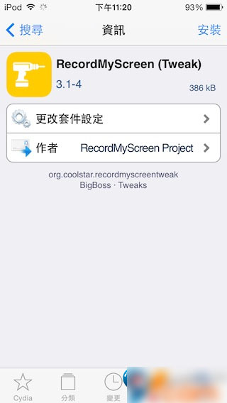 提示:如果搜索不到RecordMy Screen,可以进入Cydia—【变更】—点击左上角【刷新】—再搜索该插件。
