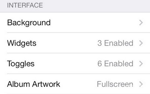 在界面的选项部分,包含了背景图、小工具、专辑艺术、电量的设置 。
