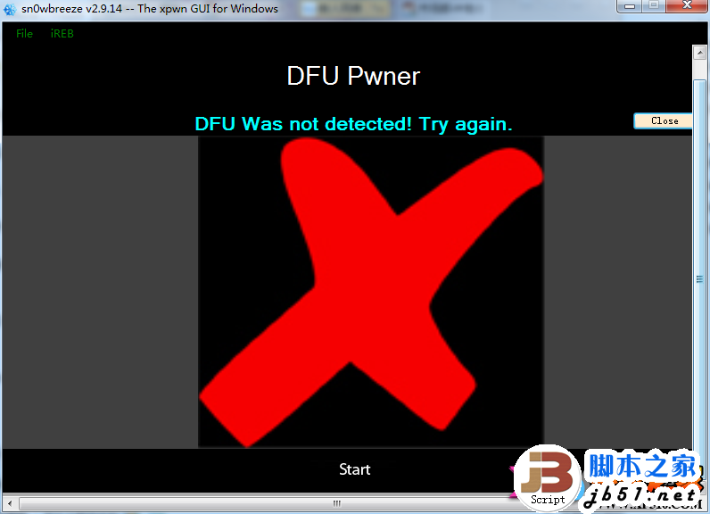 注意:引导进入DFU模式失败,请点击【Start】重复以上步骤。