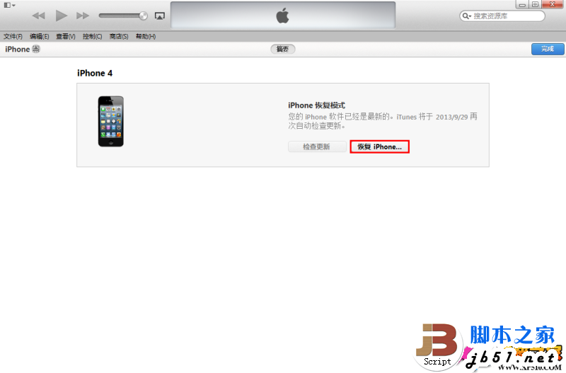八、打开iTunes,按键盘Shift+鼠标左键点击【恢复】选择【sn0wbreeze 雪花】降级工具制作降级固件。