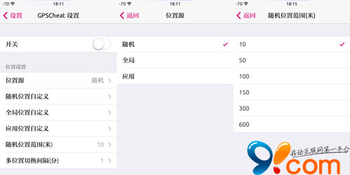 可为全局所有软件设置指定坐标(同上,可多个)周边随机范围(随机的范围可从10米至600米自选)位置;