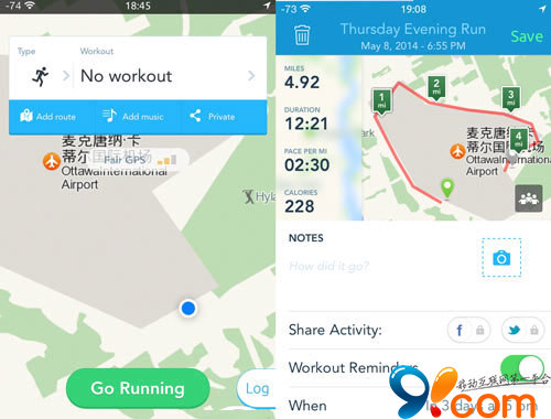 (注意Nike+Running等会检测“抖动”情况的软件如果把手机放在桌上可不行,为了制作下图,我的手抖了5分钟~~~)