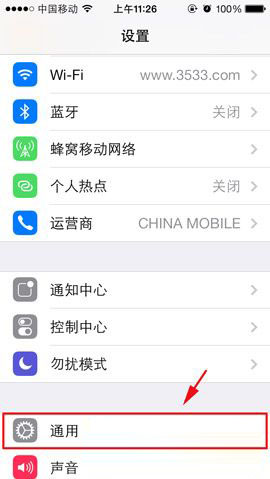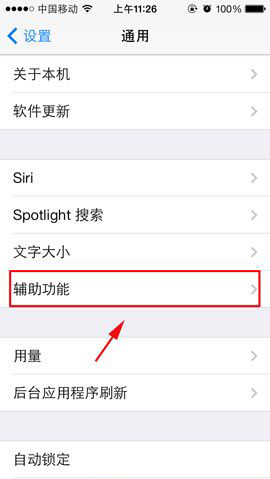 1)首先打开苹果iphone5c的“设置”,然后点击“通用”,在通用选项中再找到并点击“辅助功能”。(如下图所示)
