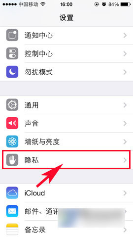 1)首先,点击“设置”进入,然后点击“隐私”。(如下图所示)