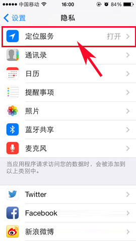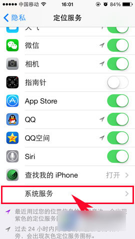 2)进入“隐私”界面后点击“定位服务”,然后往下拉,找到“系统服务”后点击进入。(如下图所示)