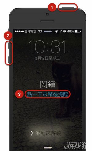 闹钟响起,锁定屏幕情况按下上方锁定键、或左边音量键、或待机画面上的小睡,这样就可以进行9分钟倒计时了。