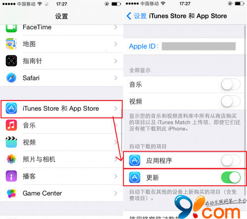 4. 在“设置”-“iTunes Store和App Store”中,关闭App的自动下载、自动更新功能;