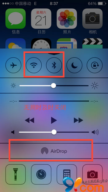 及时在您不需要时关闭“无线网、蓝牙、AirDrop”等无线通讯