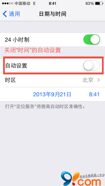 在“设置”-“通用”-“日期与时间”下关闭“自动设置”时间