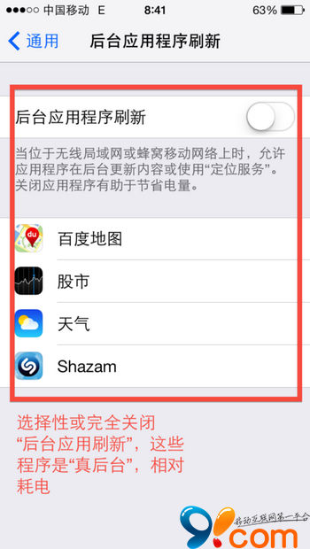 可按您需要选择性关闭一些程序,或完全关闭“后台程序刷新”功能