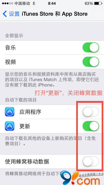 推荐打开“更新”已自动更新应用软件,关闭下方的“使用蜂窝移动数据”自动更新功能,更新将仅在Wifi下工作