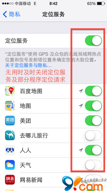 若您在完全不需要定位服务的情况下甚至可完全关闭“地位”