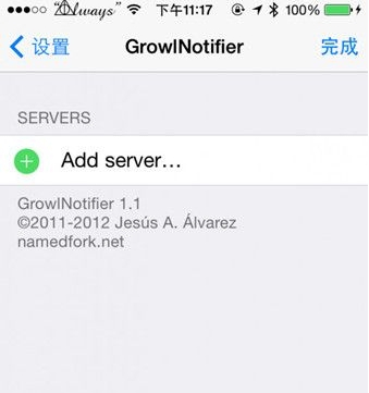1.打开"设置>GrowNotifiler",点击右上角"编辑",单击 Add server 前的绿色加号,进入配置界面。