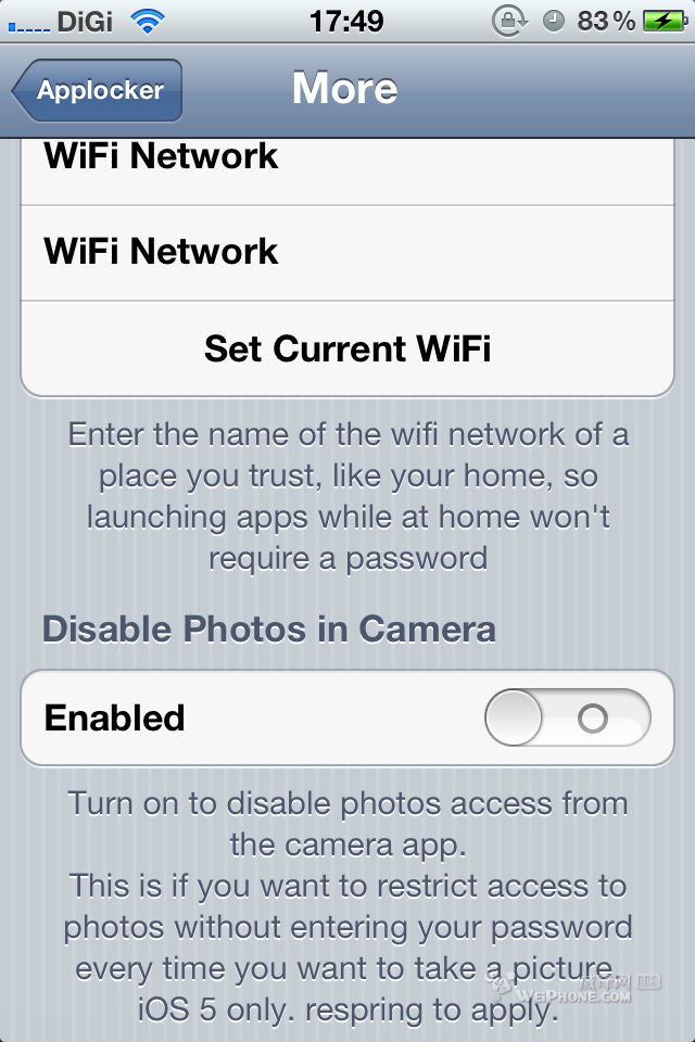 applications 程序锁选项